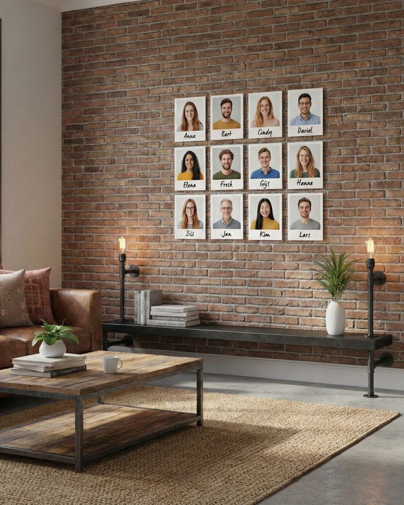 Magnetische fototegels die je schikt, herschikt en uitbreidt wanneer je wilt. Geen boren, geen schade. Je muur groeit mee met je leven — foto voor foto.