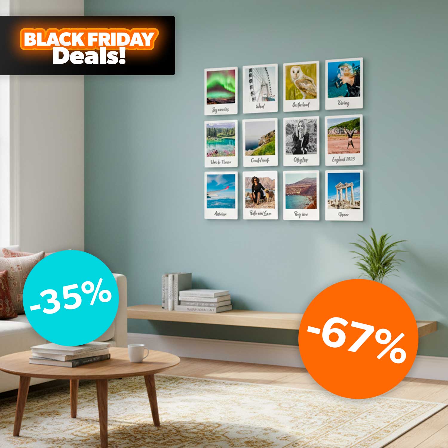 Sleek, modern, and borderless. Perfect for a dynamic photo wall. From 24x24cm up to 30x40cm.