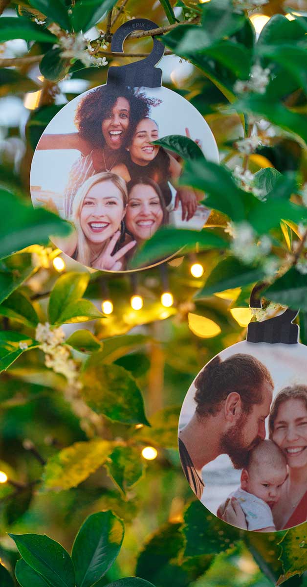Ontdek de meest persoonlijke kerstballen voor je boom—hang ze tussen de lichtjes of stuur ze als kerstkaart! Duurzame EPIX-print met hoge resolutie, 16 cm diameter en geïntegreerde ophanging. 10 stuks!